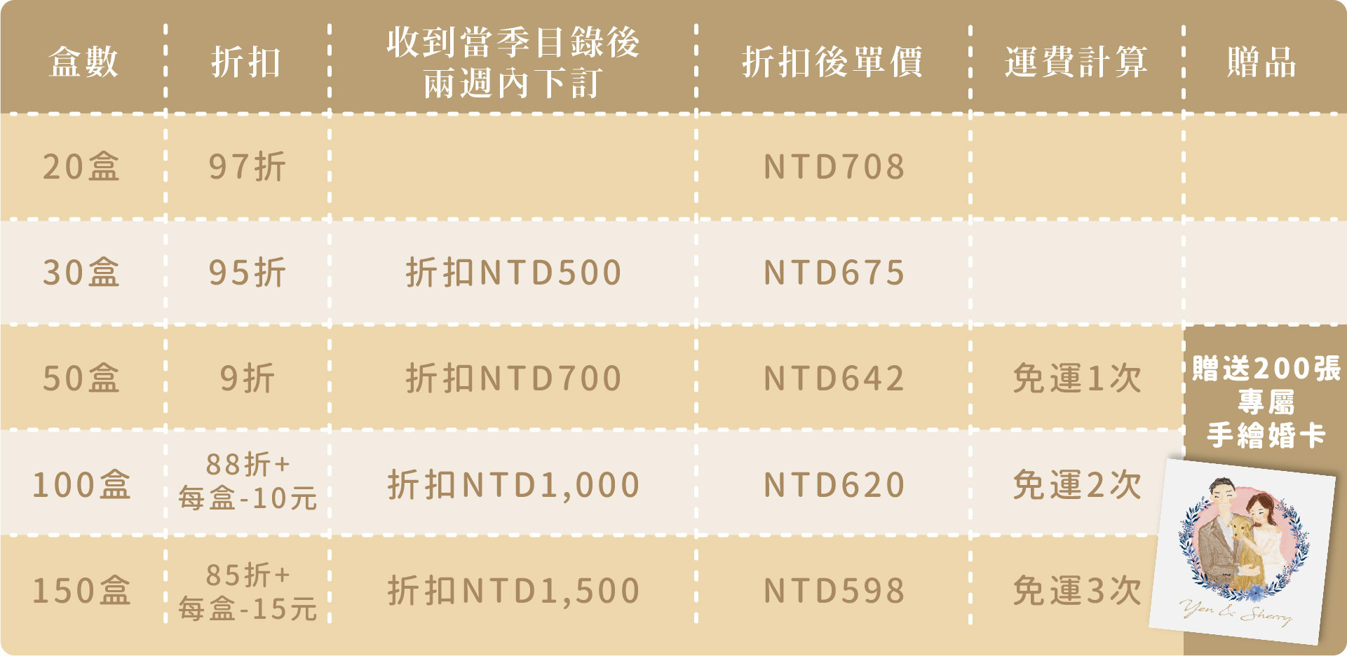 確認訂單無誤後,需付款3成訂金,收到款項後才會幫您保留檔期,開始安排製作喲!